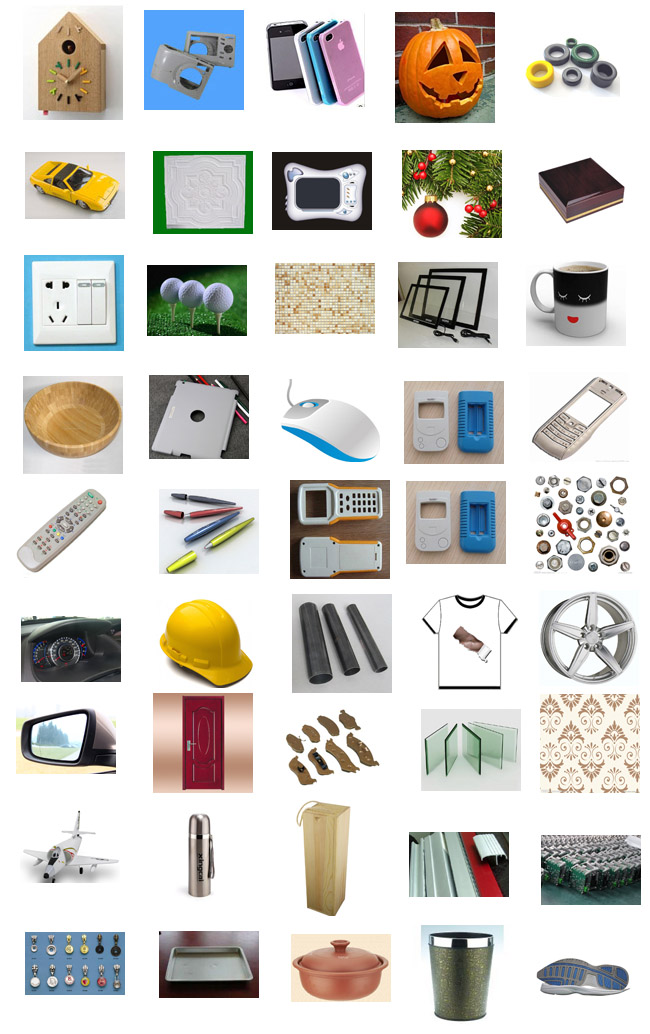 相機鏡頭、筆記本外殼、音響外殼喇叭、收音機、電視機、遙控器、插座、LED手電筒、DVD、鼠標、鍵盤、耳機、燈具等;